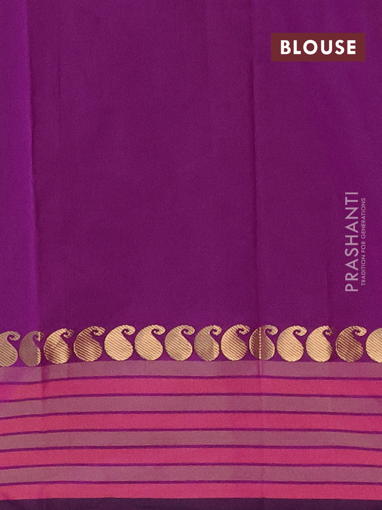 Arani semi silk saree purple and green shade with plain body and paisley zari woven simple border