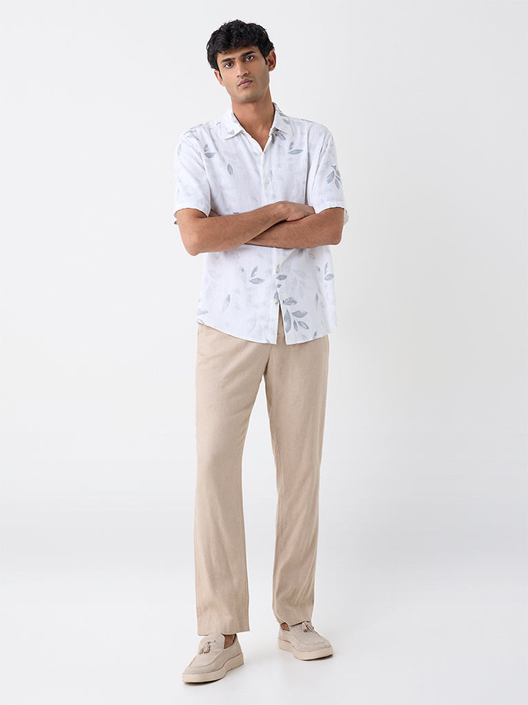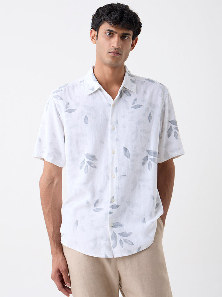 Ascot White Leaf Patterned Relaxed-Fit Shirt