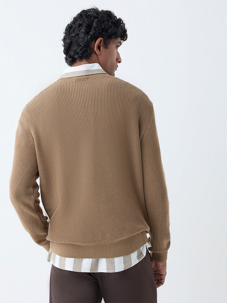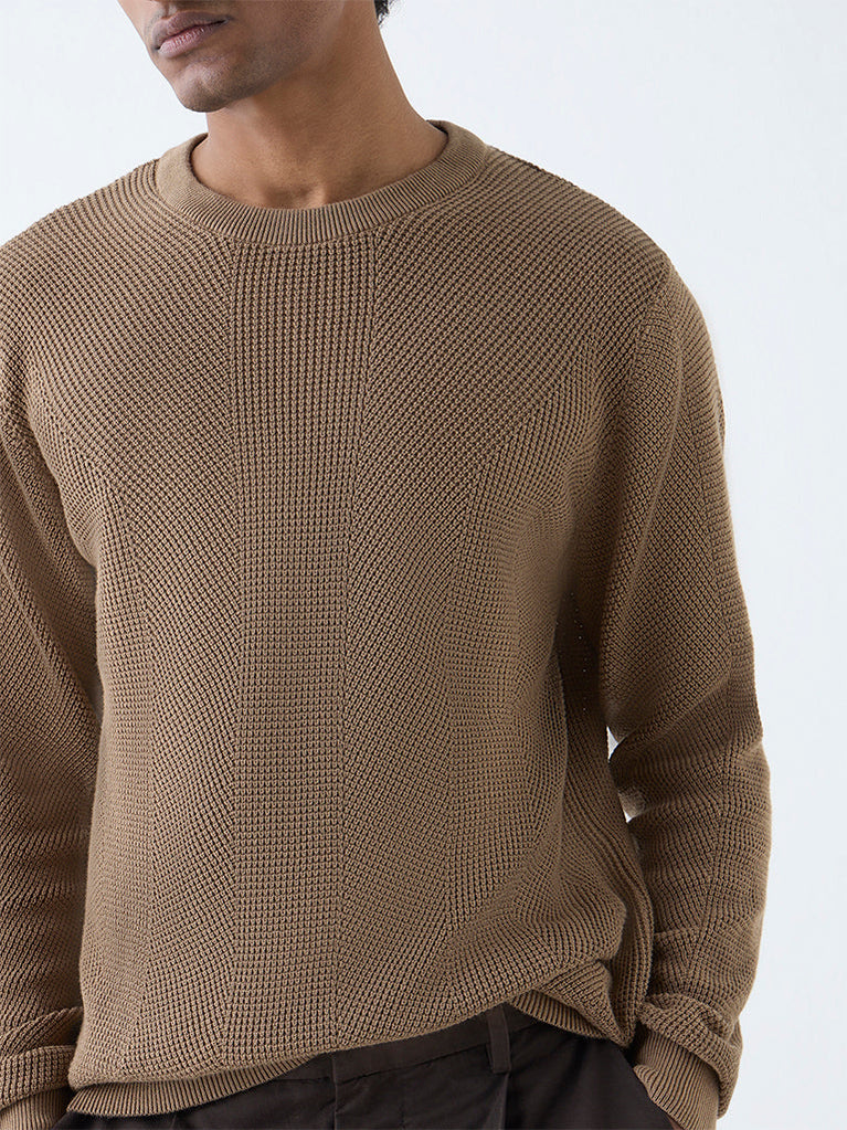Ascot Taupe Knit-Textured Relaxed-Fit Cotton Sweater