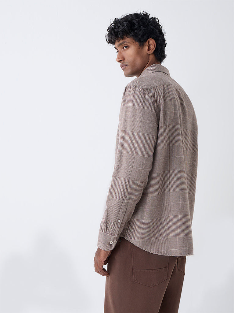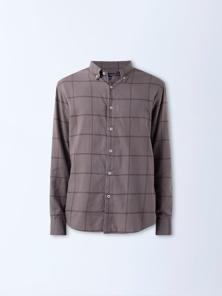 Ascot Taupe Checkered Pattern Relaxed-Fit Cotton Shirt