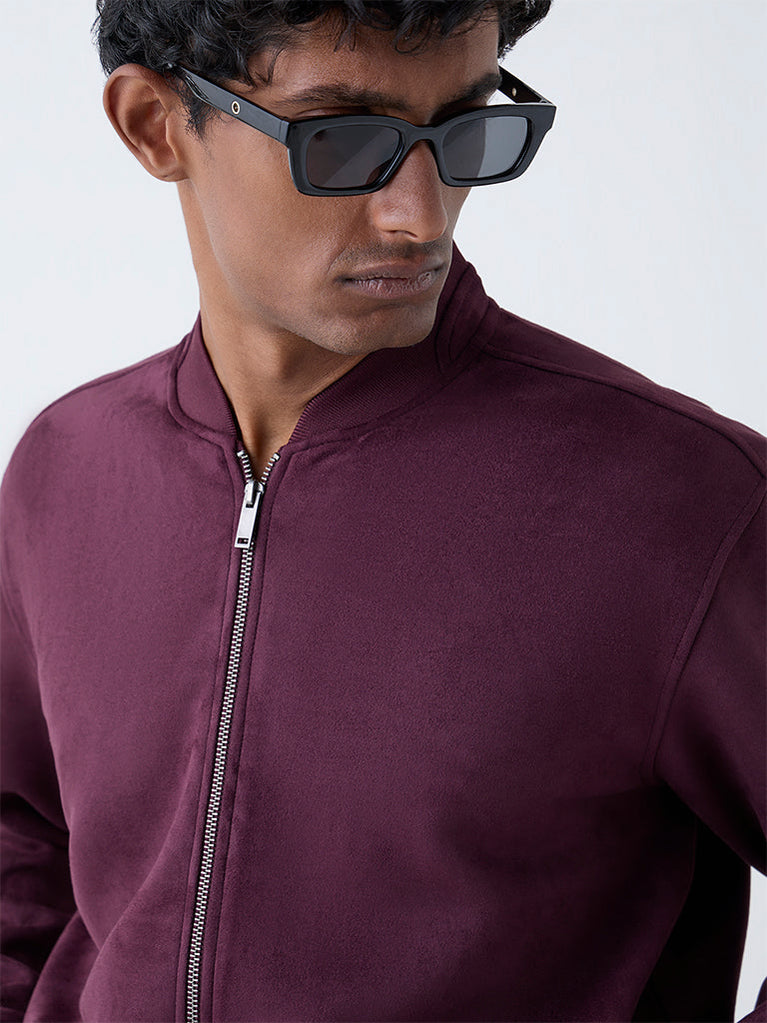 This wine jacket from Ascot is defined by a smooth suede exterior that gives the silhouette a sophisticated edge. Detailed with a mock collar, a zipper front and full sleeves, it is balanced with kangaroo pockets that add everyday utility. Cut from a premium-blend fabric with a lightweight feel, it stands out as a polished outerwear choice.