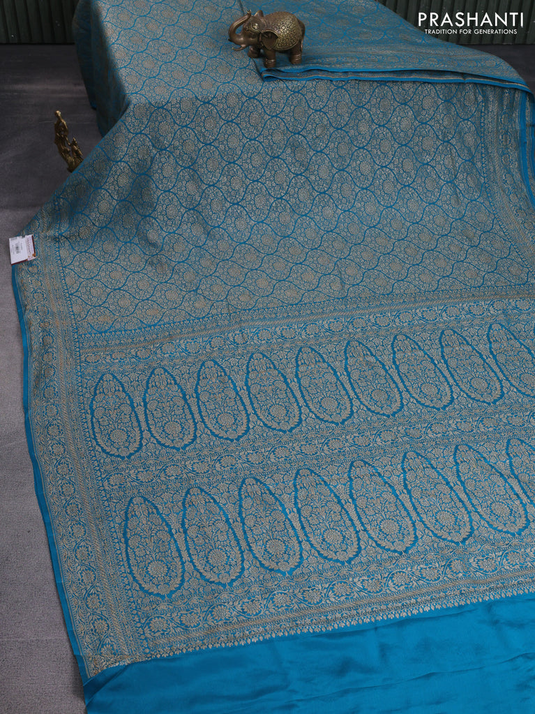 Banarasi crepe saree teal green shade with allover thread & zari woven brocade weaves and woven border