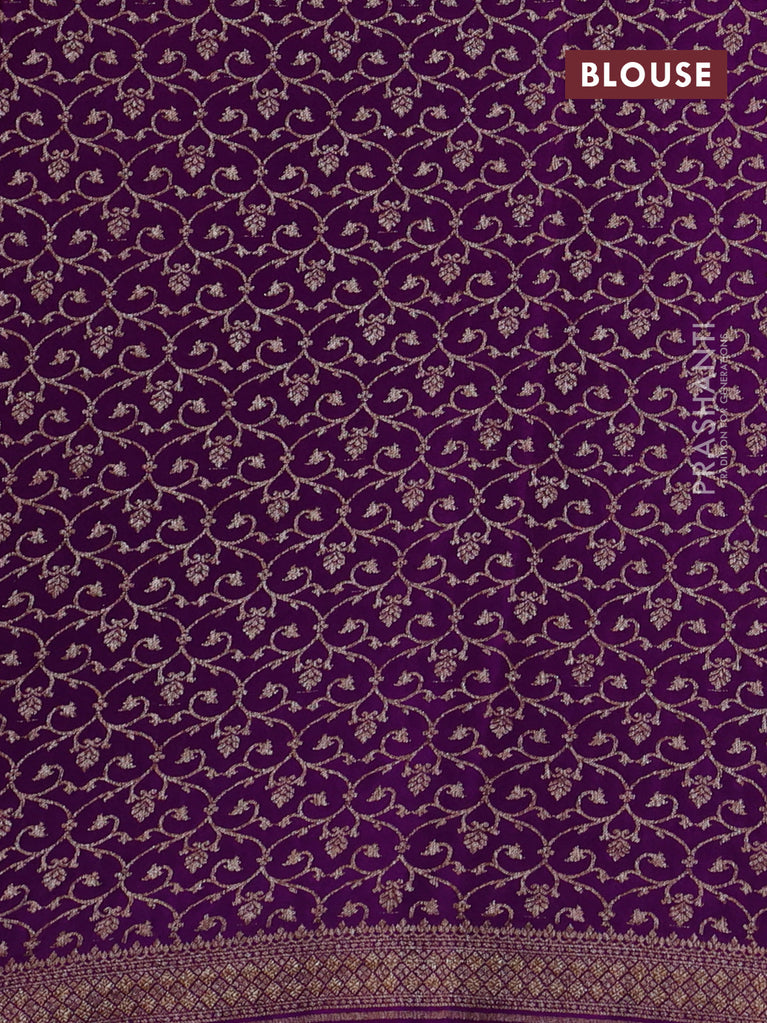 Banarasi crepe saree violet and red with allover thread & zari weaves and woven border