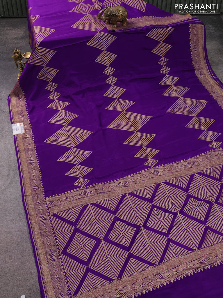 Banarasi crepe saree violet with allover thread & zari geometric weaves and woven border