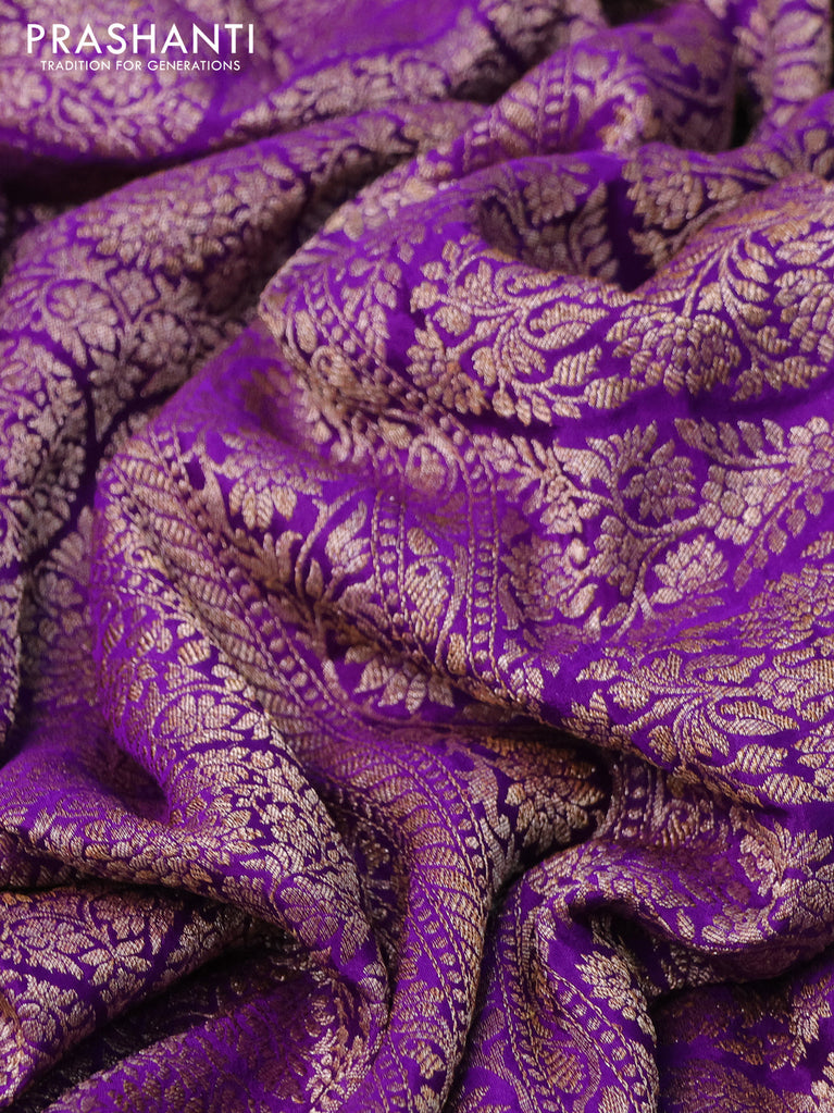 Banarasi crepe saree violet with allover thread & zari brocade weaves and woven border