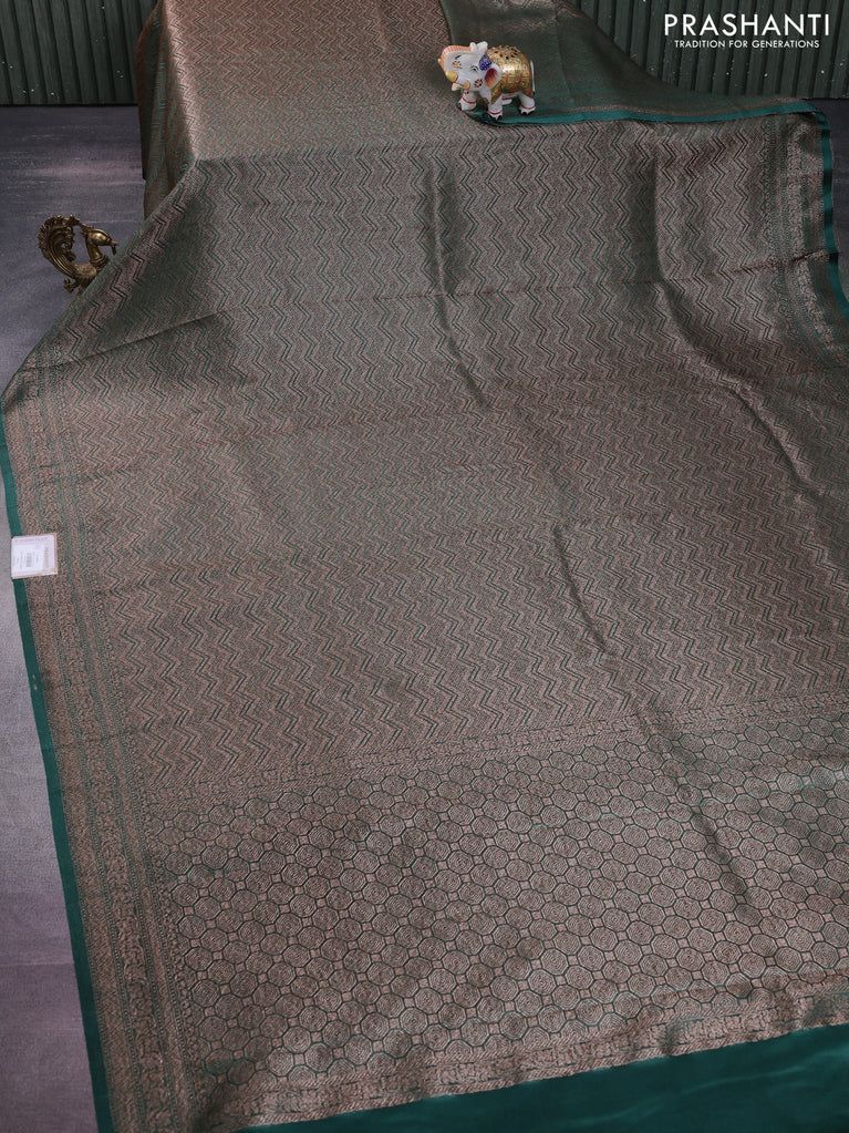 Banarasi semi crepe saree dark green with allover thread & zari woven brocade weaves and woven border