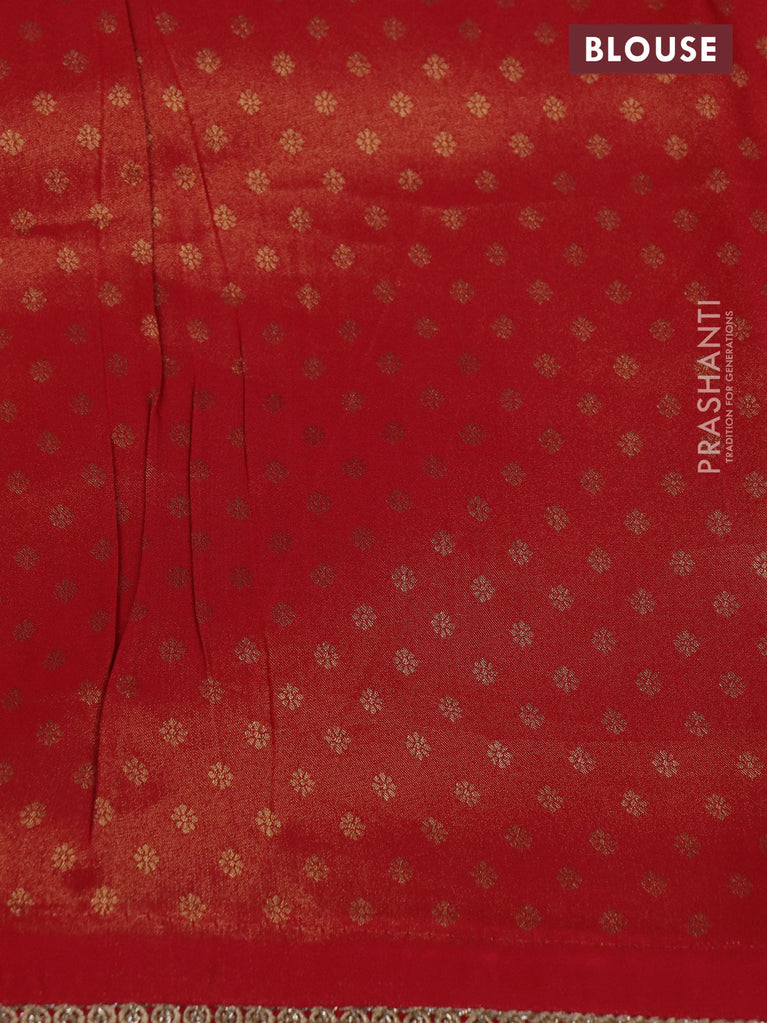Banarasi semi crepe saree red with allover zari woven brocade weaves and lace work border