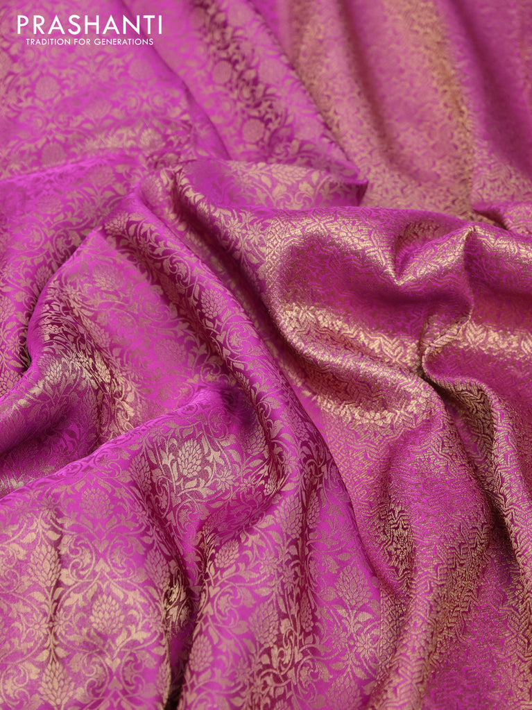 Banarasi semi crepe saree purple with allover zari woven brocade weaves and lace work border
