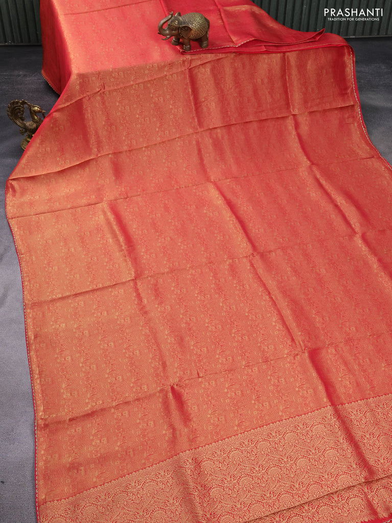 Banarasi semi crepe saree rust shade with allover thread & zari woven brocade weaves and woven border