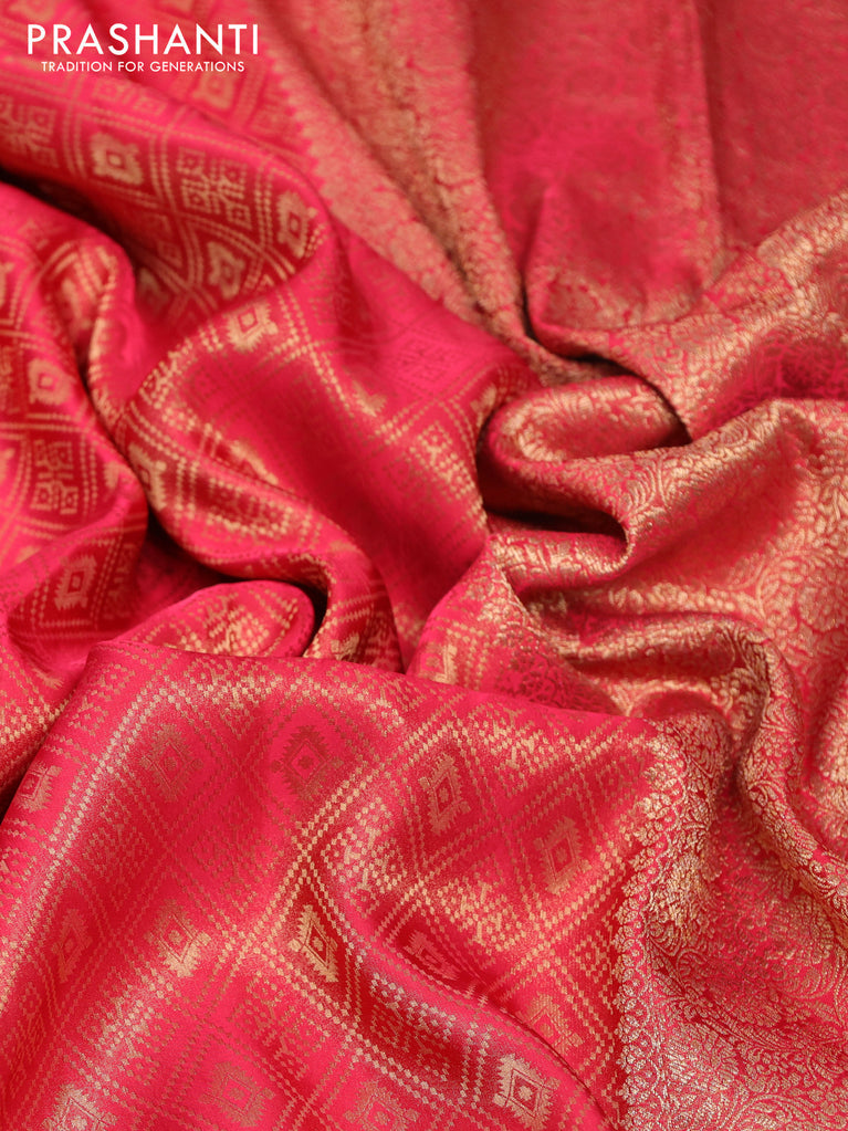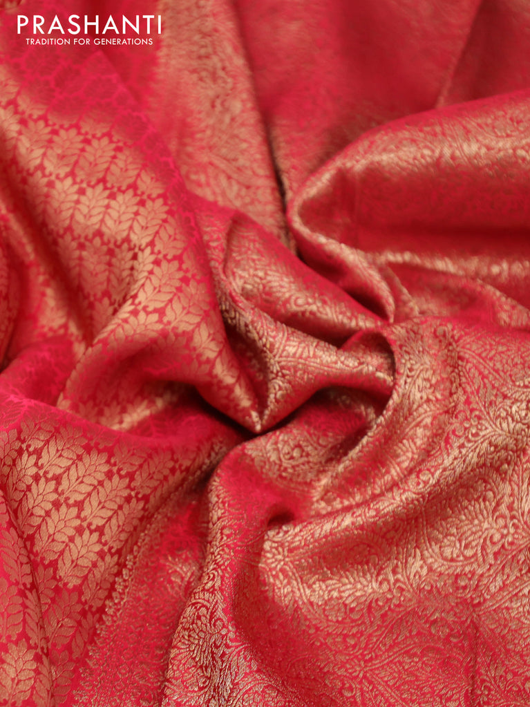 Banarasi semi crepe saree pink with allover zari woven brocade weaves and lace work border