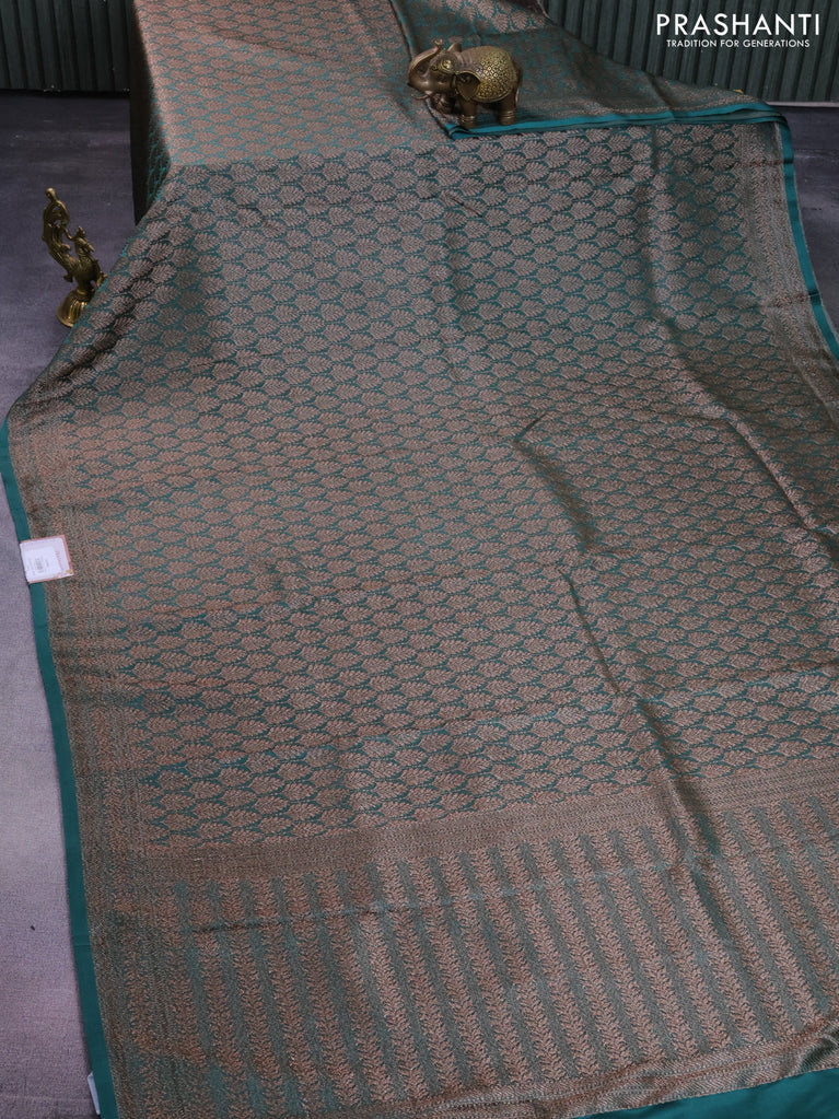 Banarasi semi crepe saree teal green with allover thread & zari woven brocade weaves and woven border