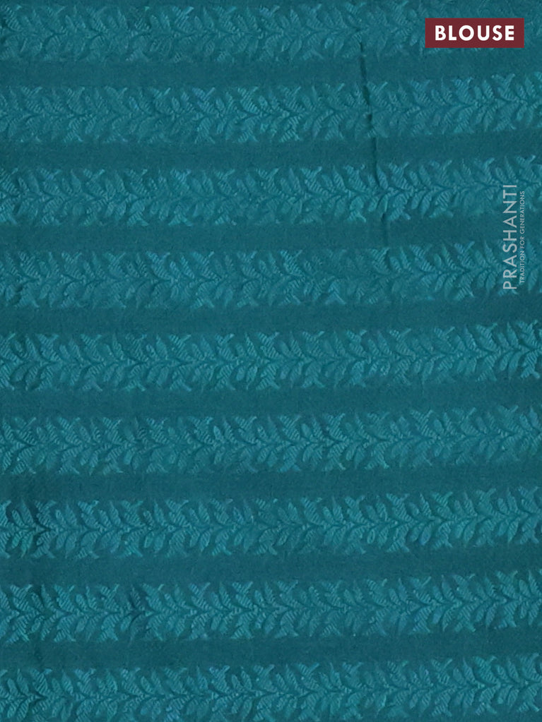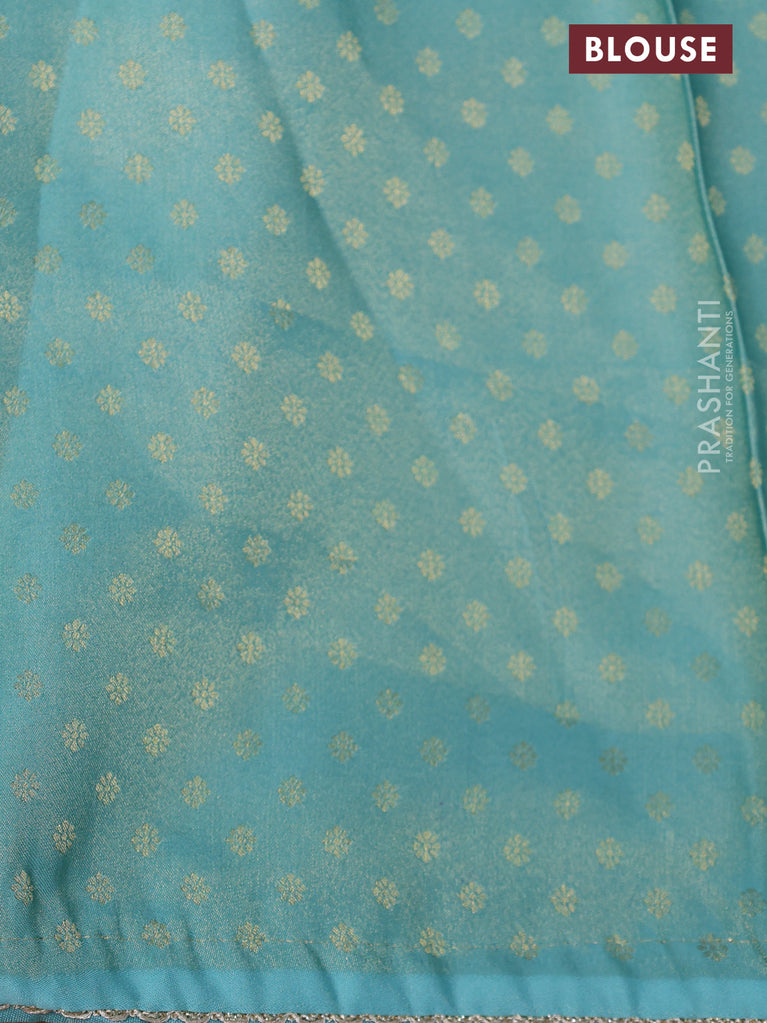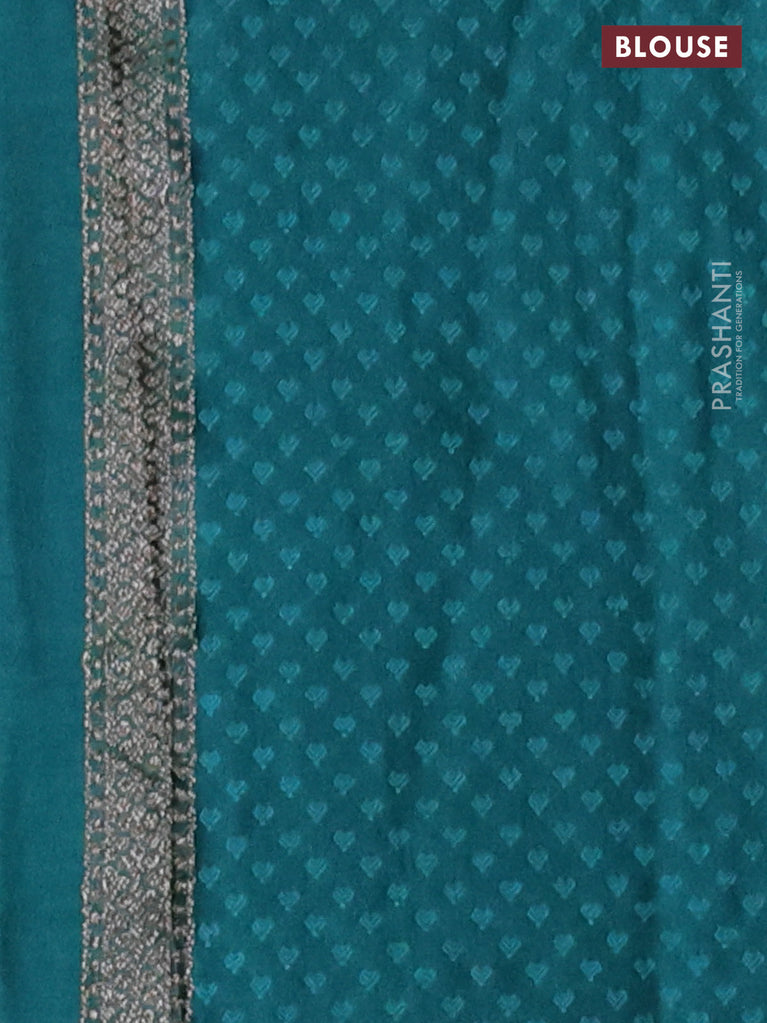Banarasi semi crepe saree teal blue shade with allover zari woven brocade weaves and lace work border
