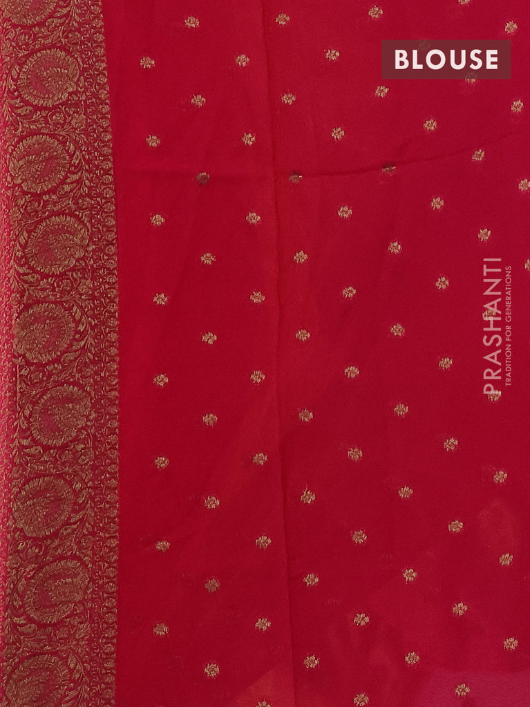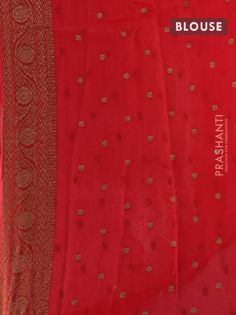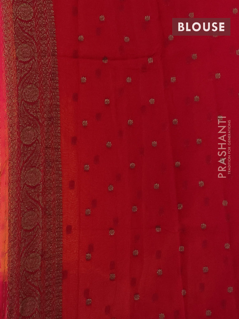 Banarasi semi georgette saree red and green with allover thread & zari woven buttas and woven border