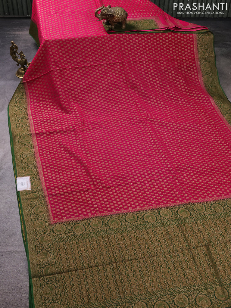 Banarasi semi georgette saree pink and green with allover thread & zari woven buttas and woven border
