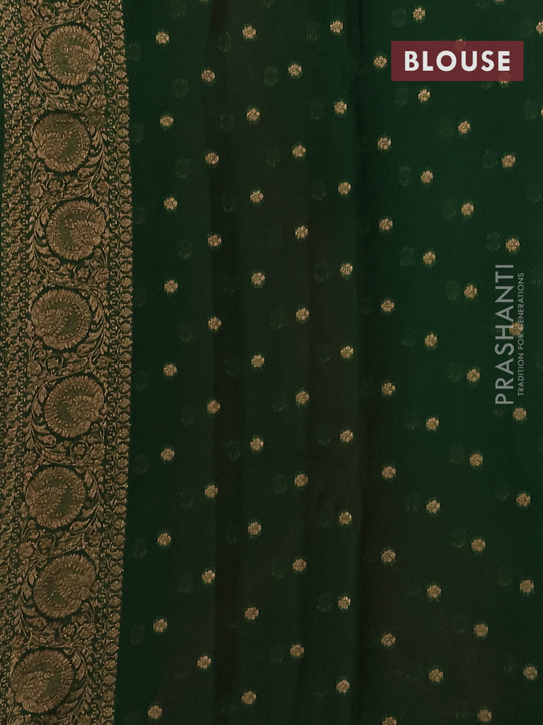 Banarasi semi georgette saree green and red with allover thread & zari woven buttas and woven border