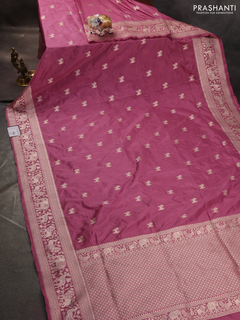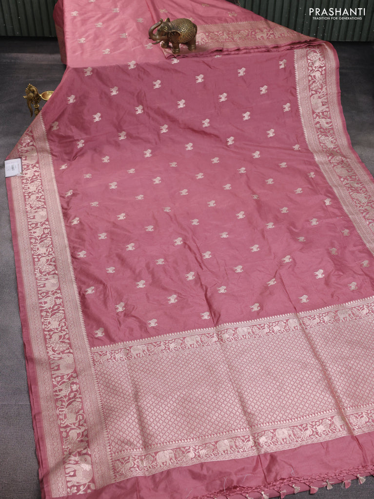 Banarasi semi katan saree pastel maroon with zari woven buttas and zari woven border