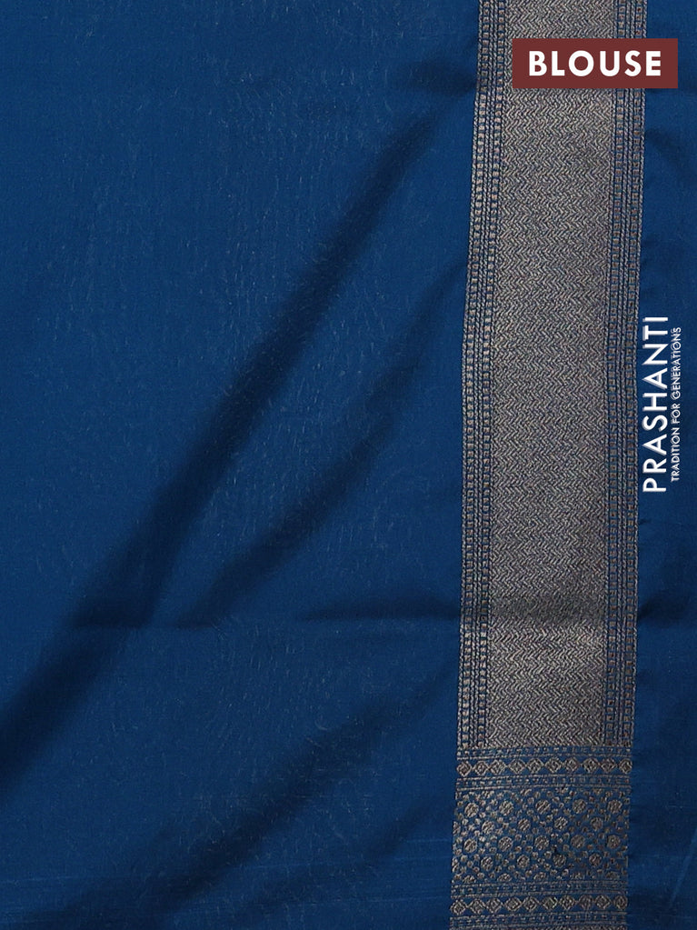 Banarasi semi katan saree peacock blue with allover thread & zari weaves and woven border