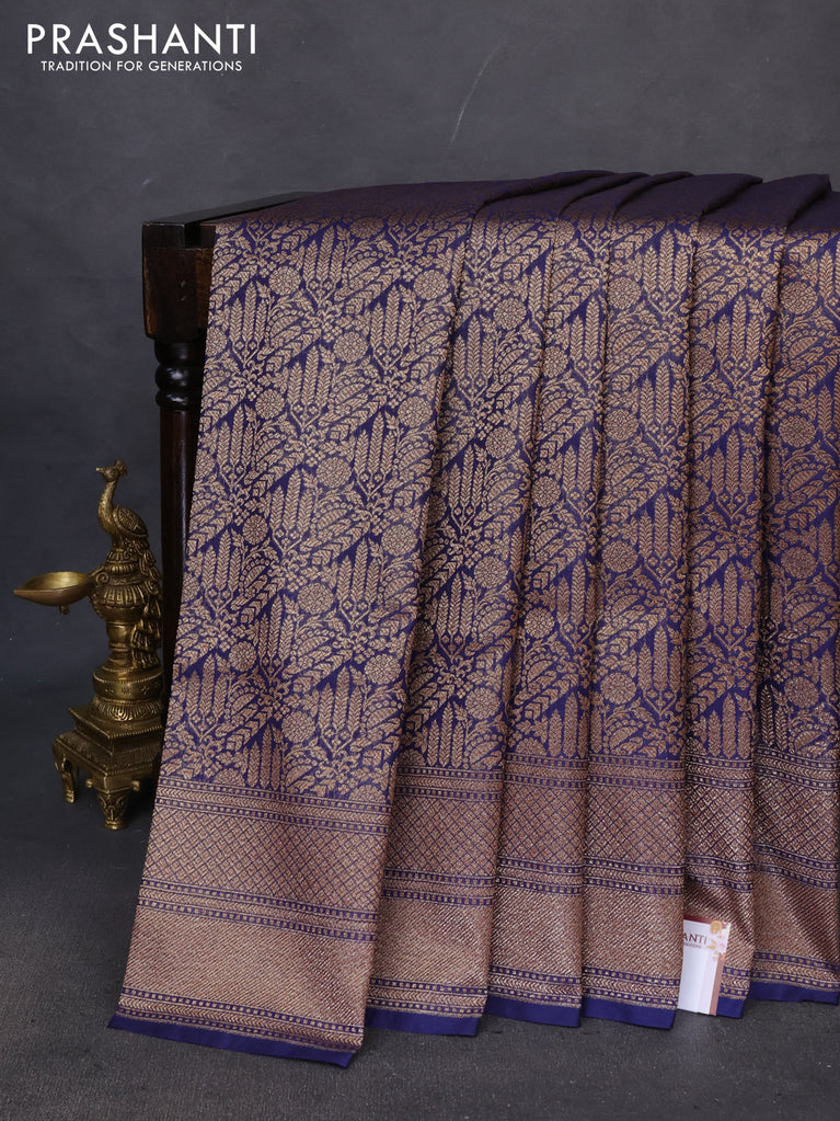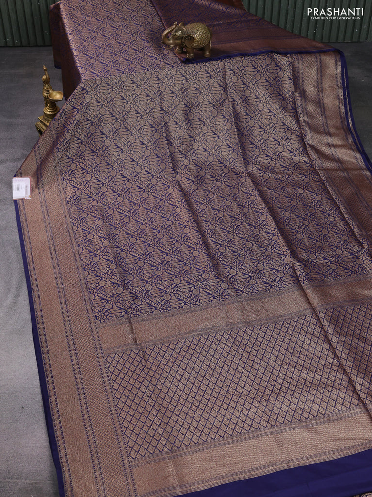 Banarasi semi katan saree navy blue with allover thread & zari woven brocade weaves and woven border