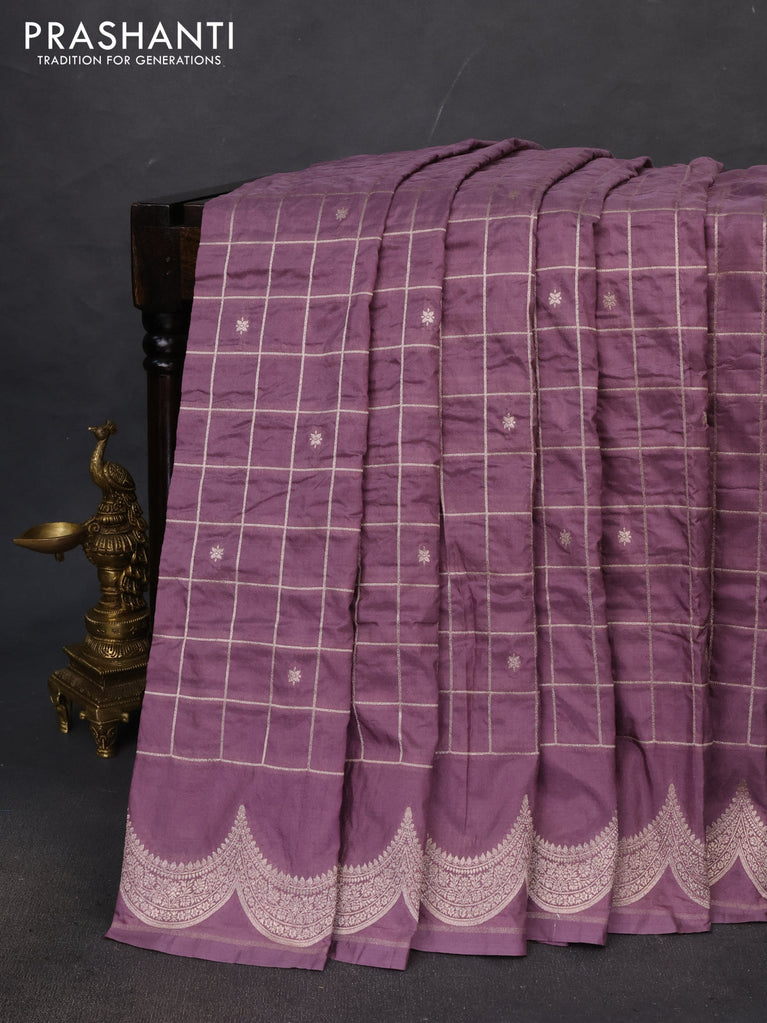 Banarasi semi katan saree pastel lavender with allover zari checks and zari woven border