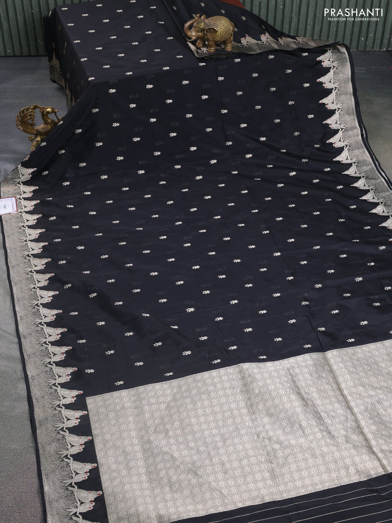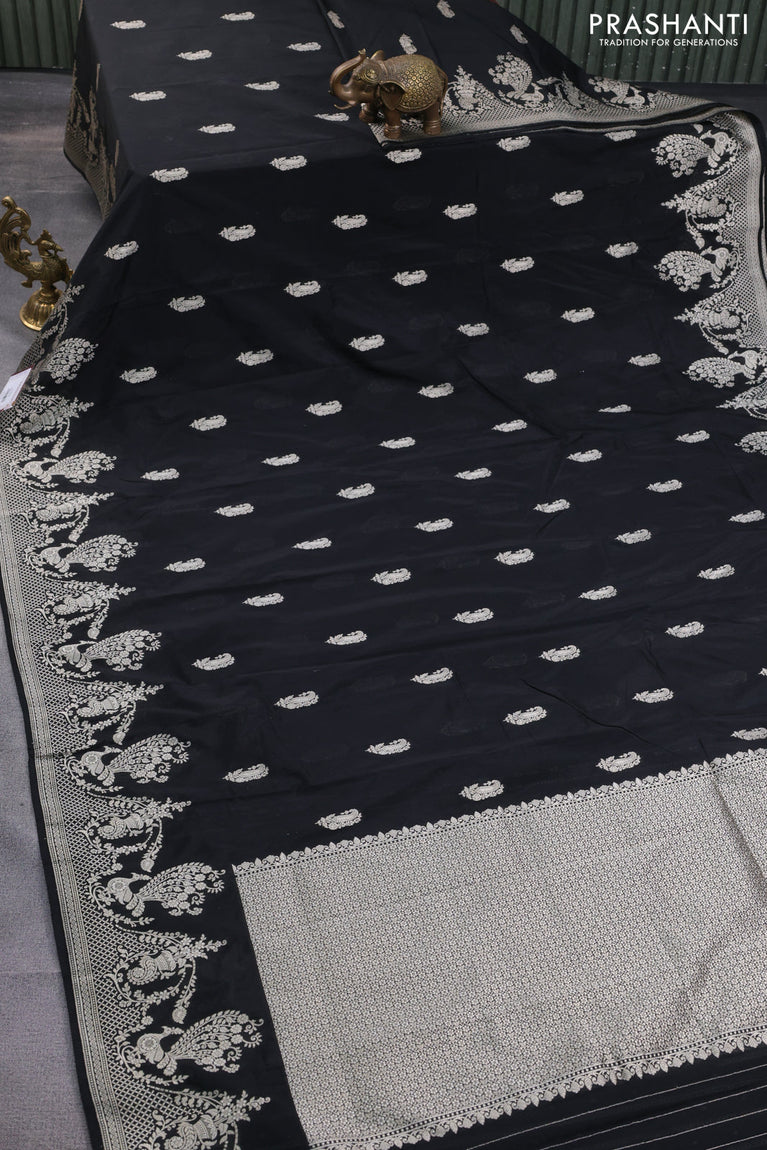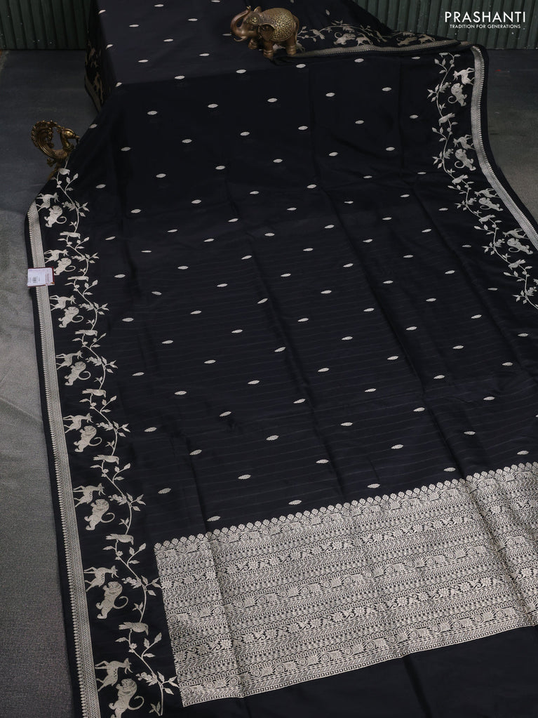 Banarasi semi katan silk saree black with allover zari woven buttas and rich zari woven border
