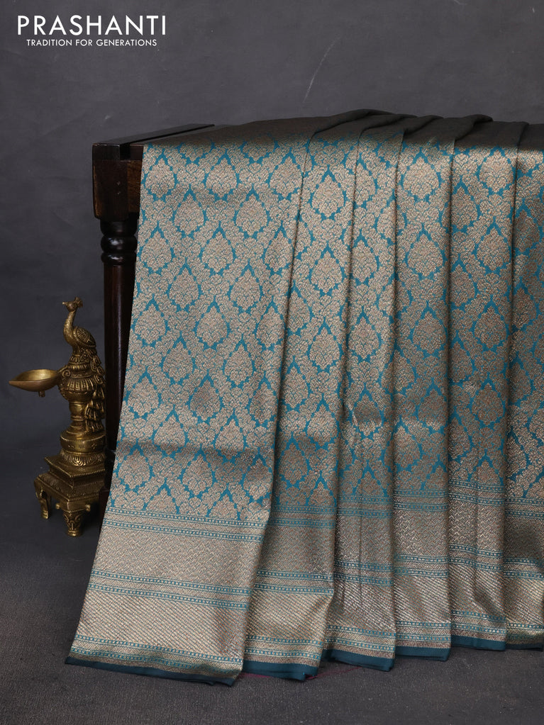 Banarasi semi katan saree teal green with allover thread & zari woven brocade pattern and woven border