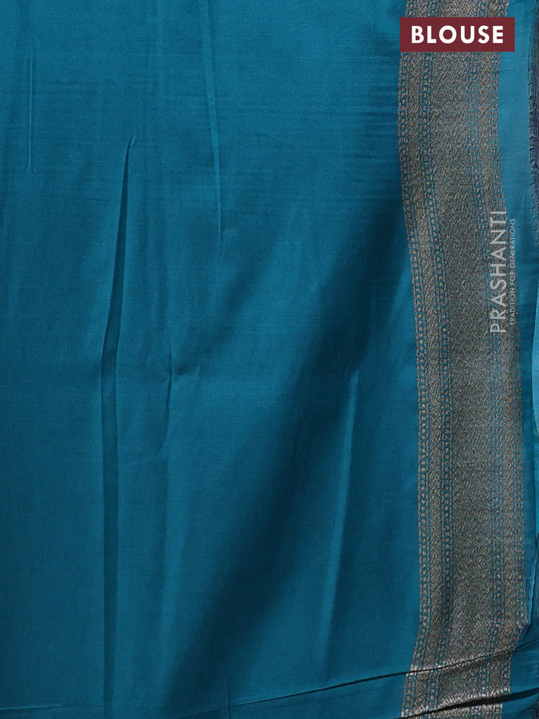 Banarasi semi katan silk saree dual shade of bluish green with allover silver & gold zari weaves and floral zari woven border