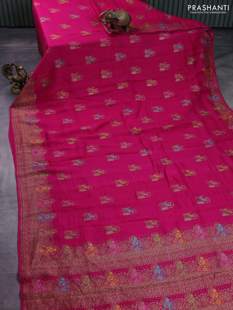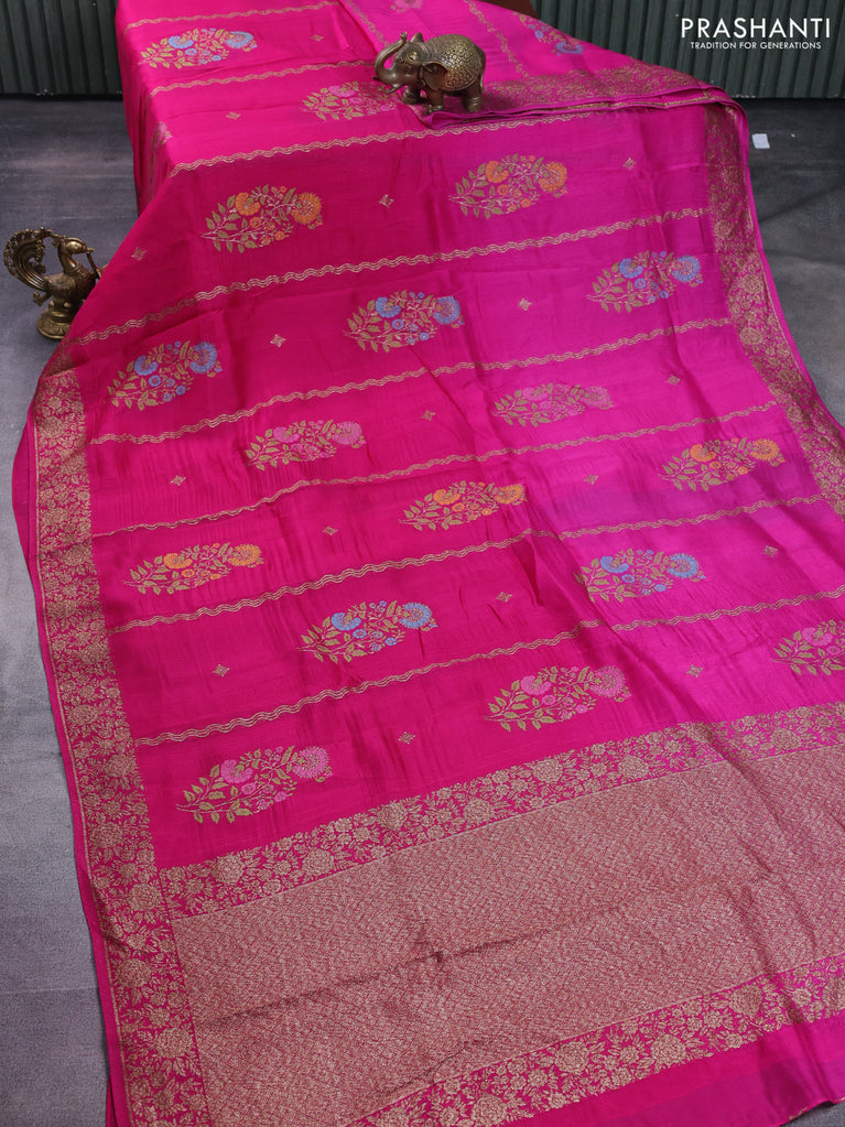 Banarasi semi raw silk saree pink with thread & zari woven buttas and woven border