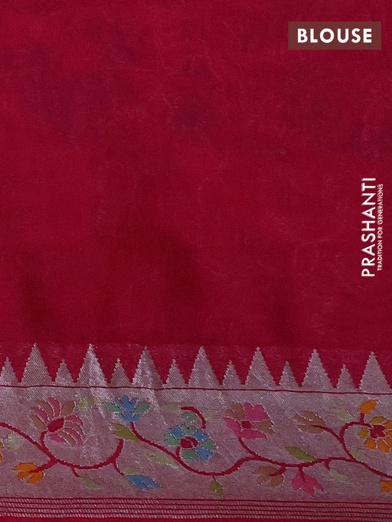 Banarasi semi raw silk saree red with allover silver woven brocade weaves and floral design paithani border