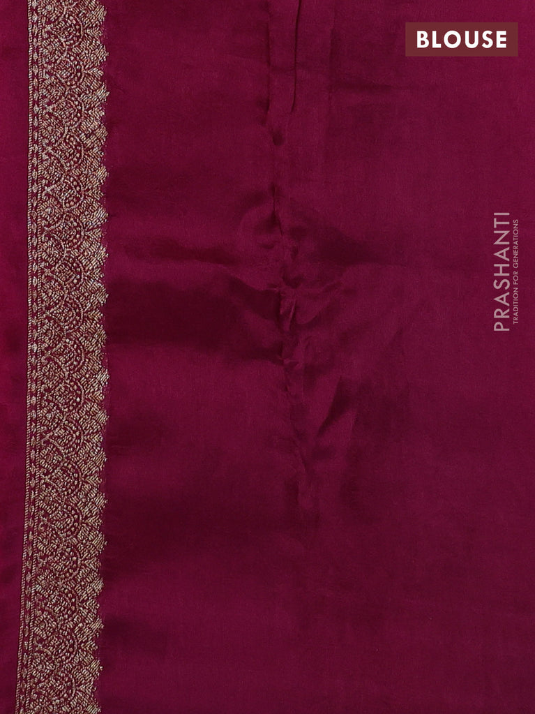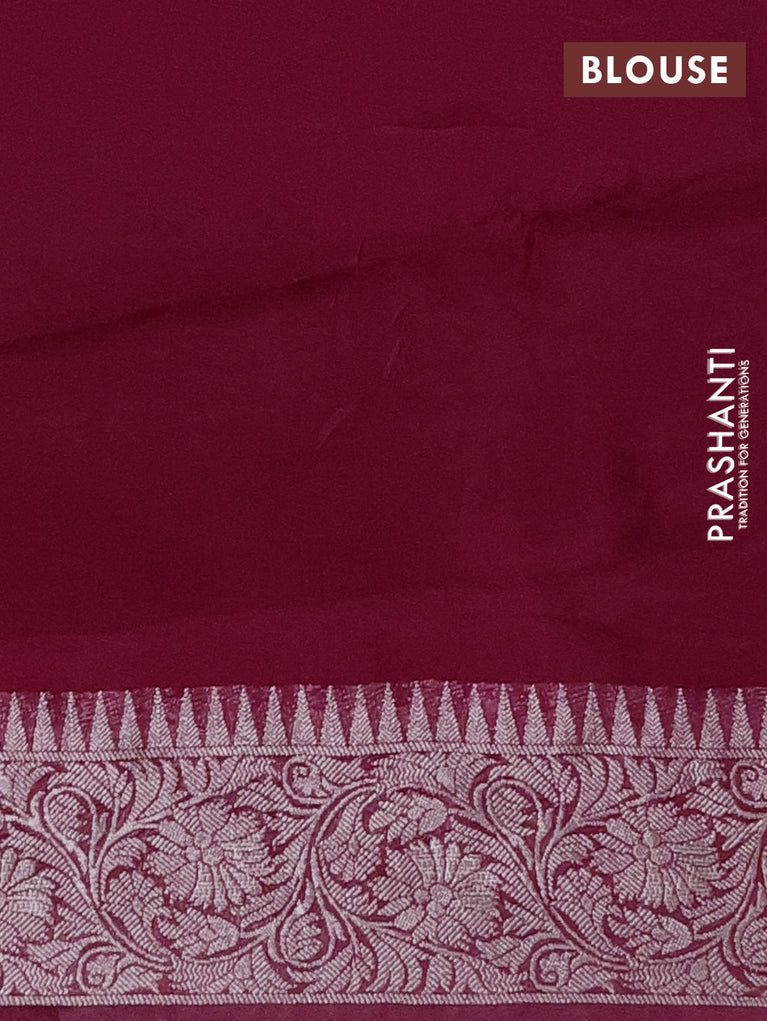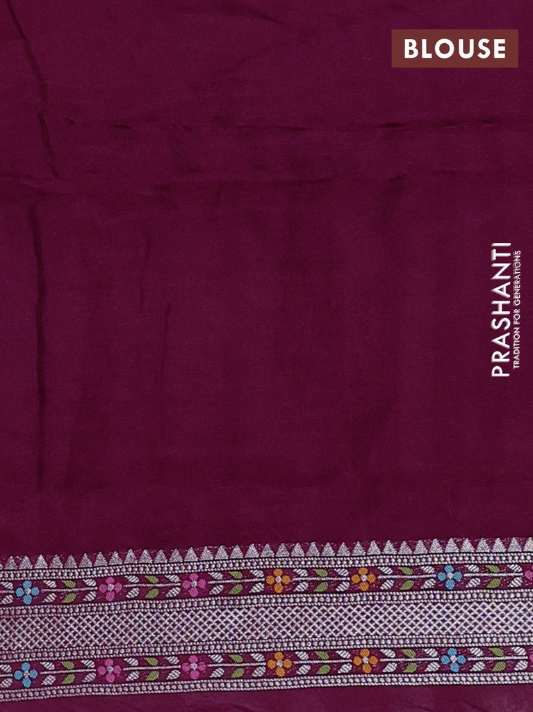 Banarasi semi raw silk saree wine shade with allover silver zari woven brocade weaves and floral design paithani border