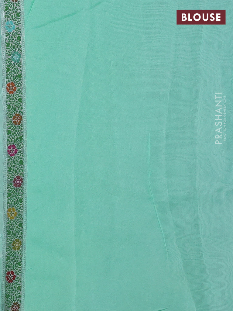 Banarasi semi raw silk saree teal green with allover silver zari woven floral weaves and floral design paithani border