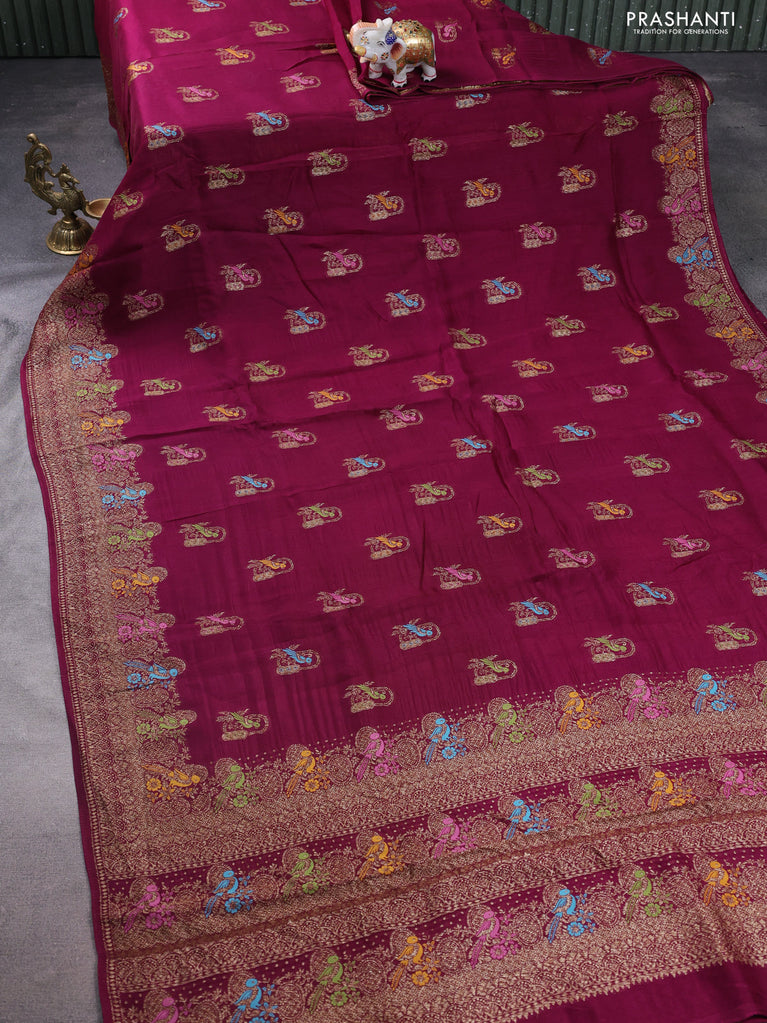 Banarasi semi raw silk saree wine shade with thread & zari woven buttas and woven border