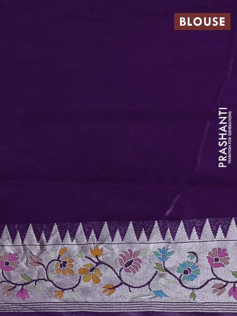 Banarasi semi raw silk saree violet with allover silver zari woven paithani weaves and silver zari woven border