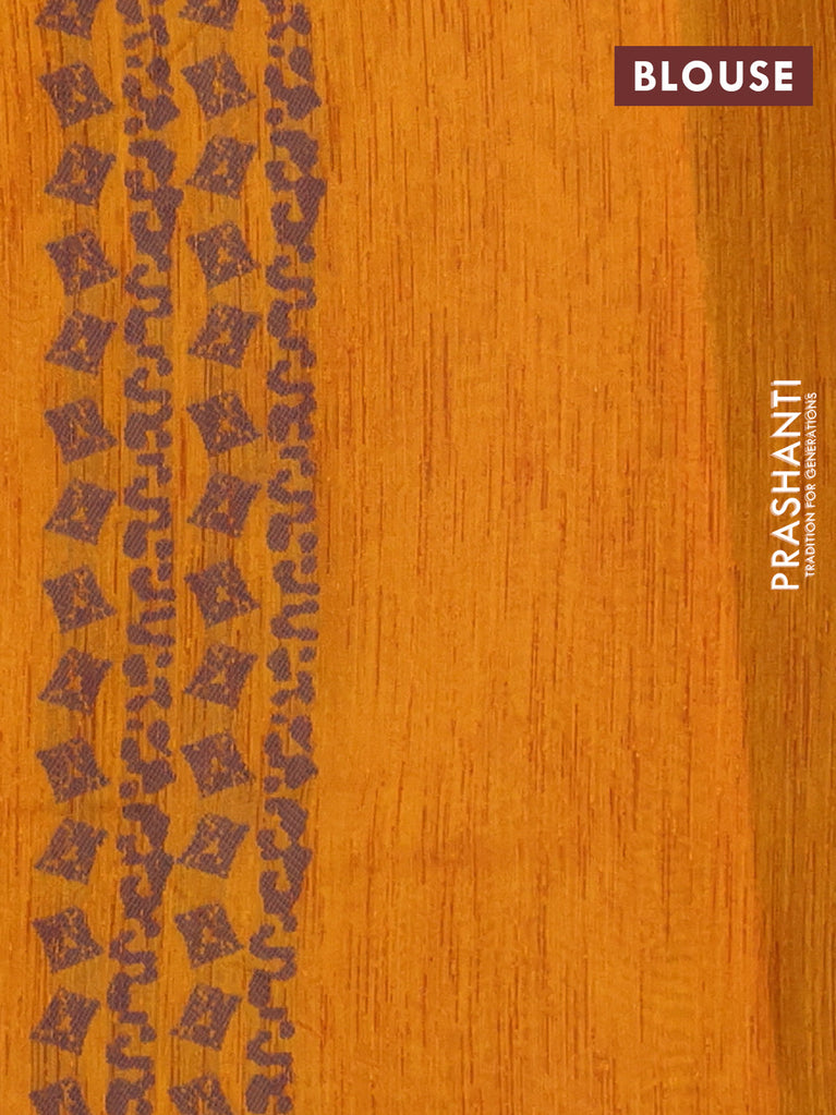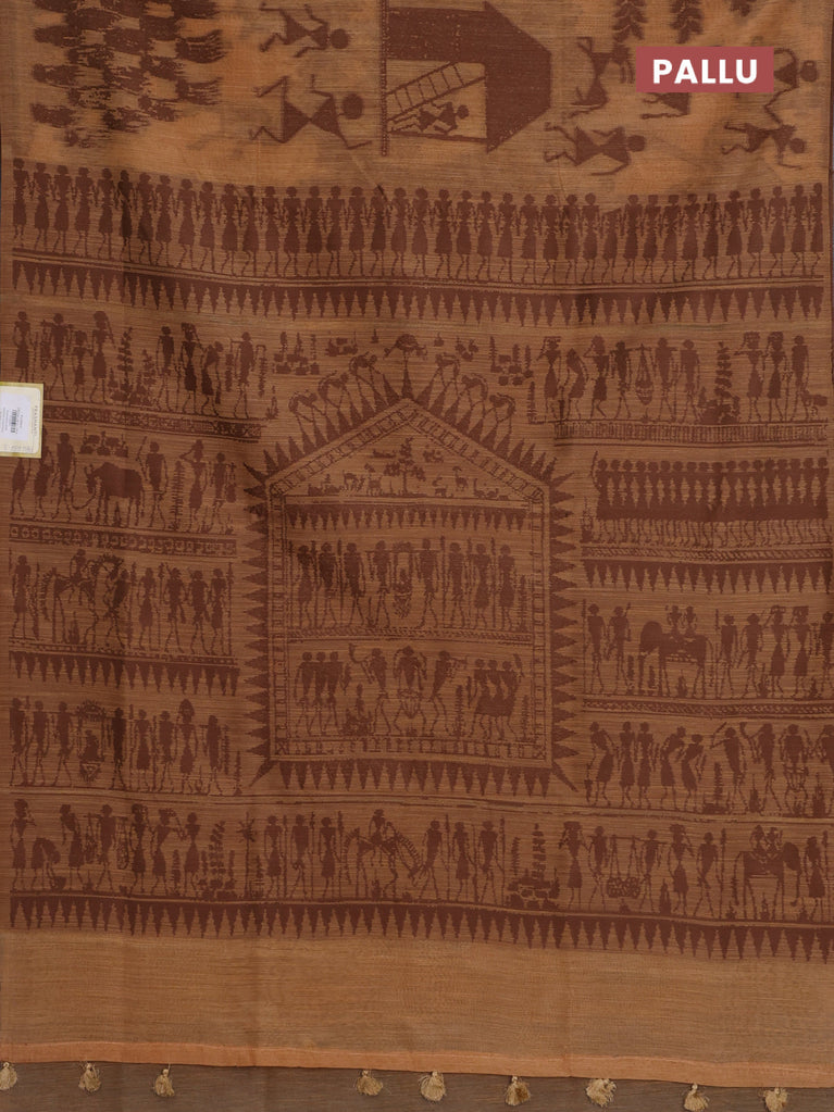 Banarasi semi matka saree dark sandal with allover warli design thread weaves in borderless style