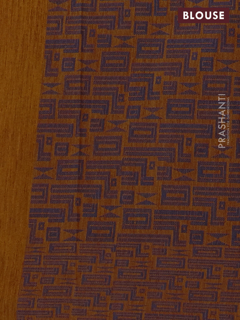 Banarasi semi matka saree dark mustard and blue with allover thread weaves and thread woven border