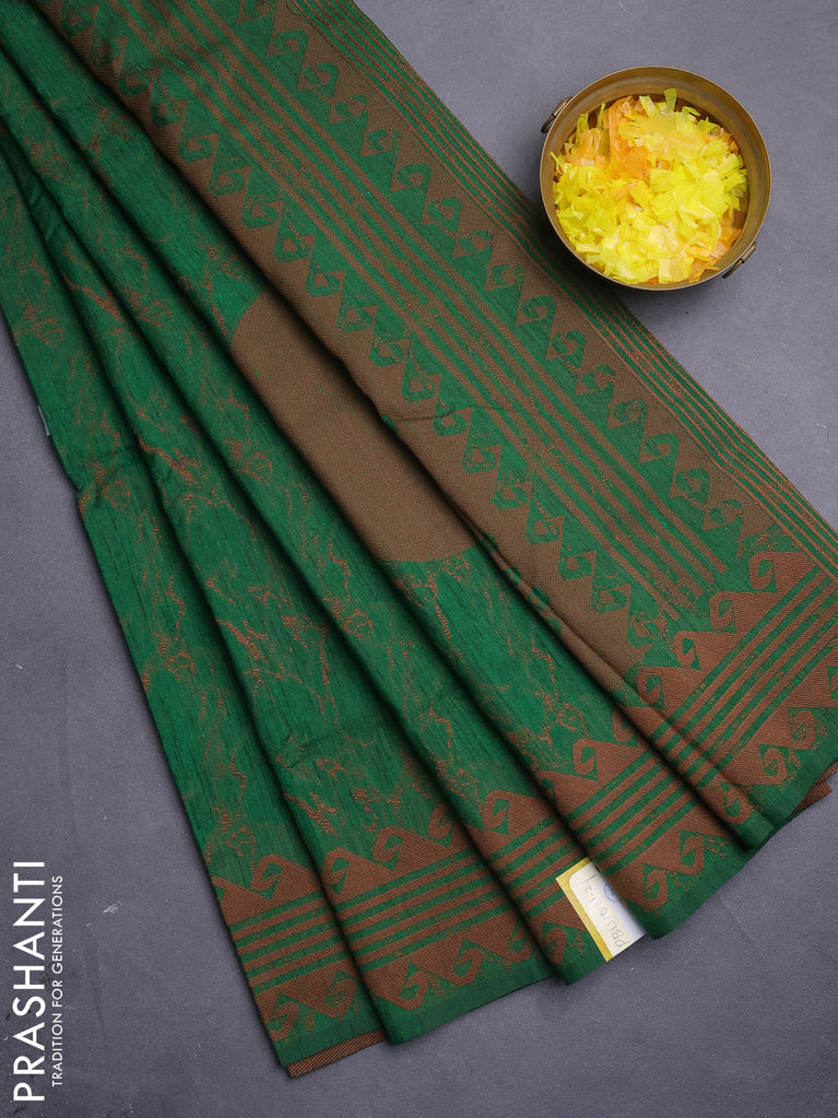 Banarasi semi matka saree green shade with allover thread weaves in borderless style