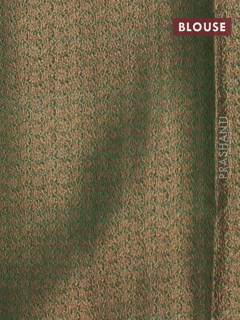 Banarasi semi matka saree green with allover thread woven leaf butta weaves in borderless style