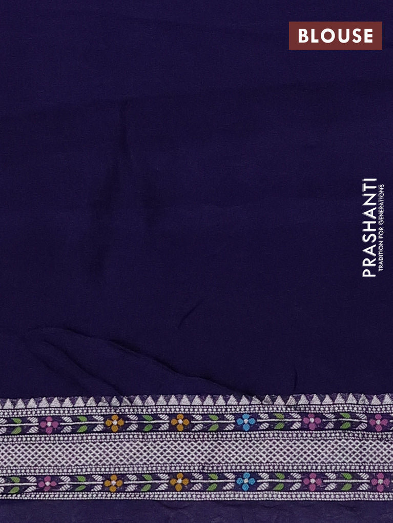 Banarasi semi raw silk saree navy blue with allover silver zari woven paithani weaves and woven border