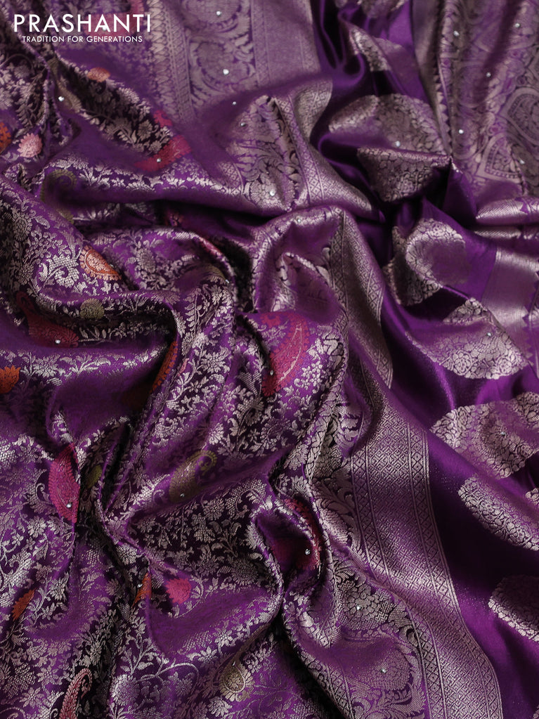 Banarasi silk saree violet with allover zari woven brocade weaves and zari woven border