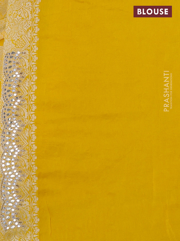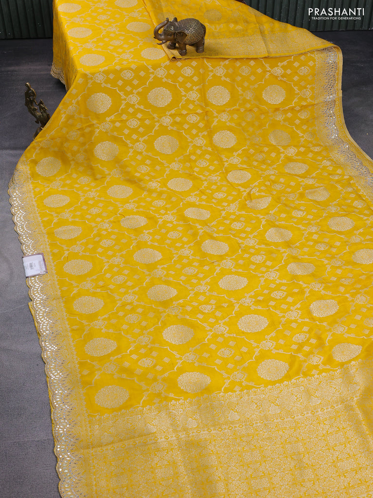 Banarasi silk saree yellow with allover zari woven jaal weaves and gotapatti work border
