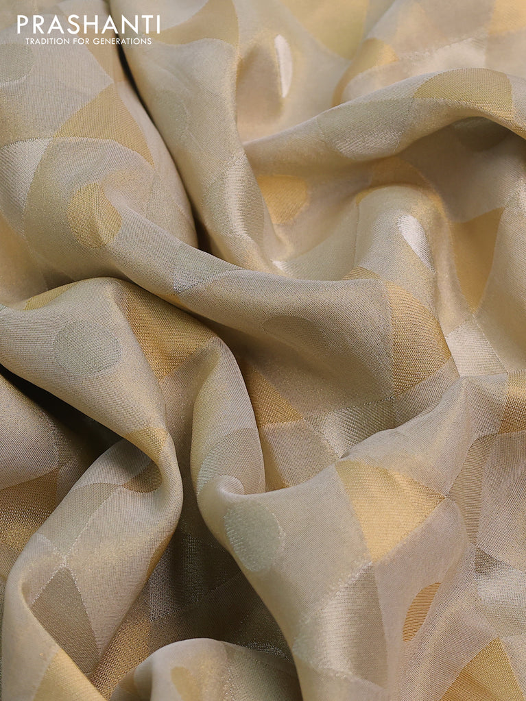 Banarasi tissue saree beige and dark green with allover zari woven geometric wevaes and lace work border