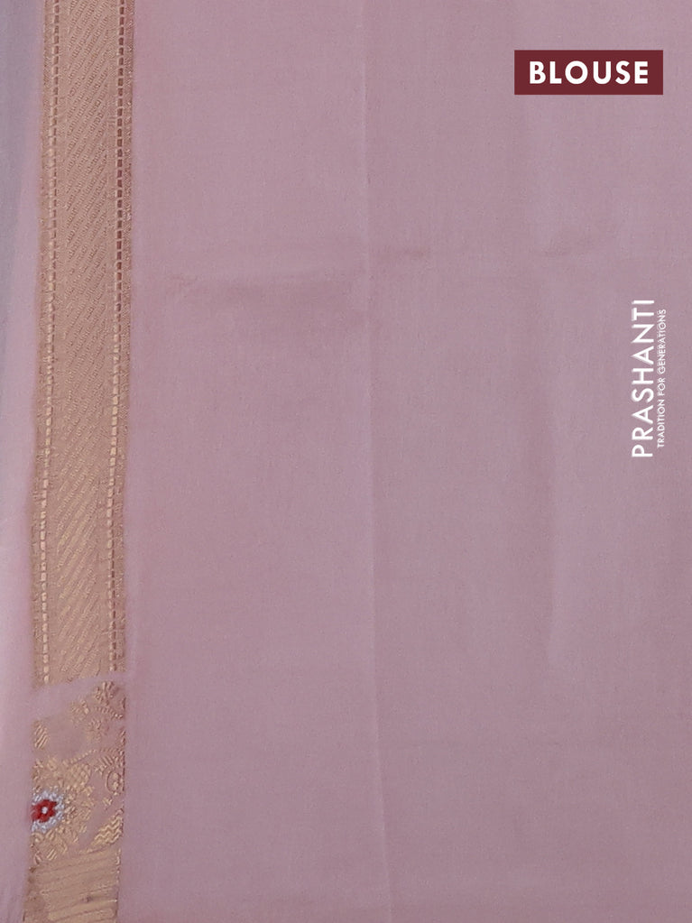 Banarasi tissue semi silk saree beige and pastel lavender with zari weaves & buttas and floral zari woven butta border