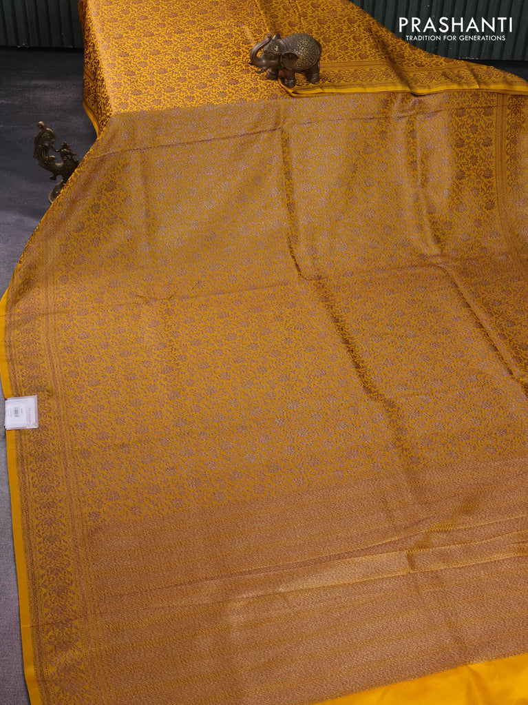 Banarasi semi silk saree yellow with allover thread & zari weaves and woven border