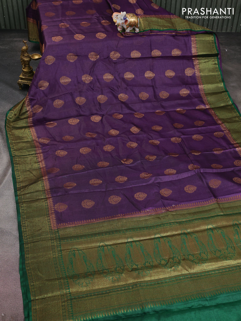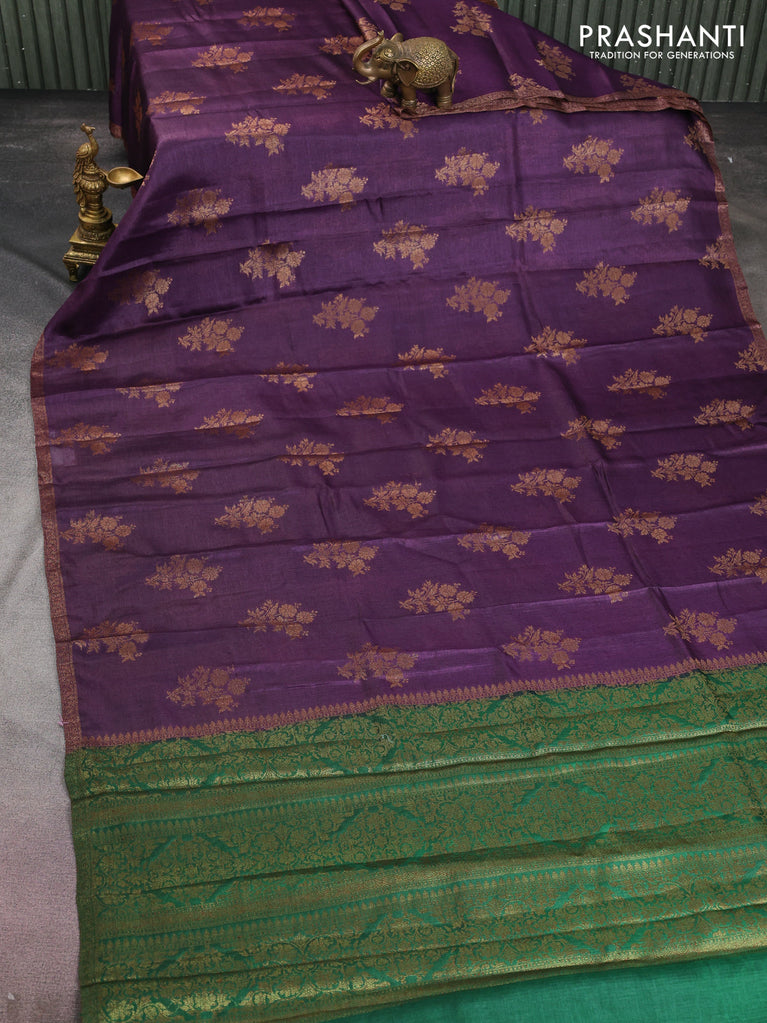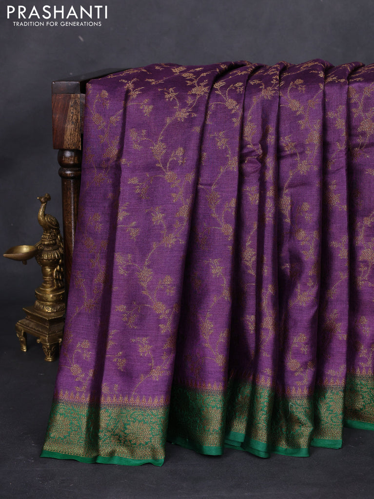 Banarasi tussar silk saree purple and green with thread & zari woven floral buttas and woven border