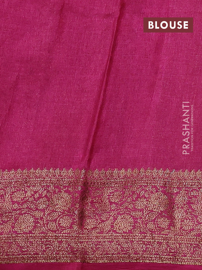 Banarasi tussar silk saree peacock blue and magenta pink with thread & zari woven buttas and woven border