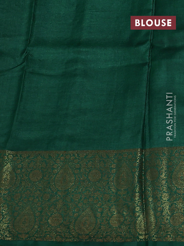 Banarasi tussar silk saree peacock blue with allover thread & zari buttas and small woven border