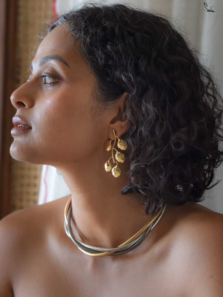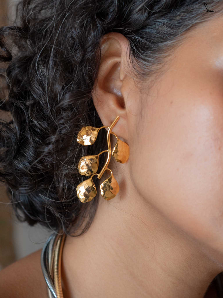These micro-gold screw earrings in sterling silver are inspired by a flower caught mid-blossom not in nature’s garden, but in the quiet, human spaces where emotions unfold. A whisper of petals, still unfolding. A poem in metal for your everyday glam.