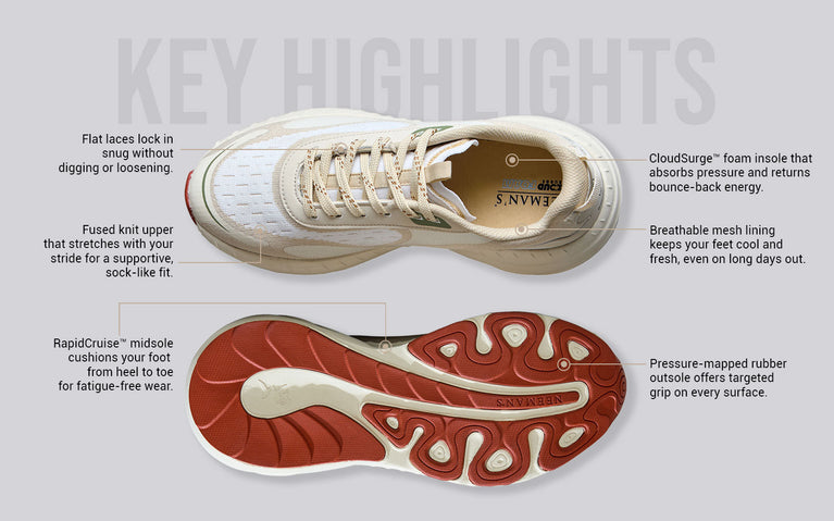 Begin Walk Pulse isn’t just built for comfort - it’s built to show up. With RapidCruise™ cushioning, energy-return tech, and pressure-mapped support, this pair turns morning strides into main character moments. Whether you’re clocking miles or just clocking glances, Pulse makes sure you’re walking with purpose - and presence.