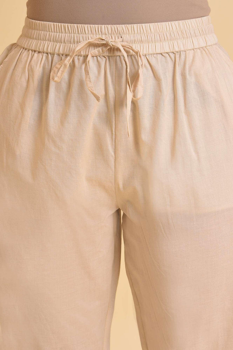 Beige Geometric Printed Embroidered Anarkali Cotton Kurta with Parallel Pant Set