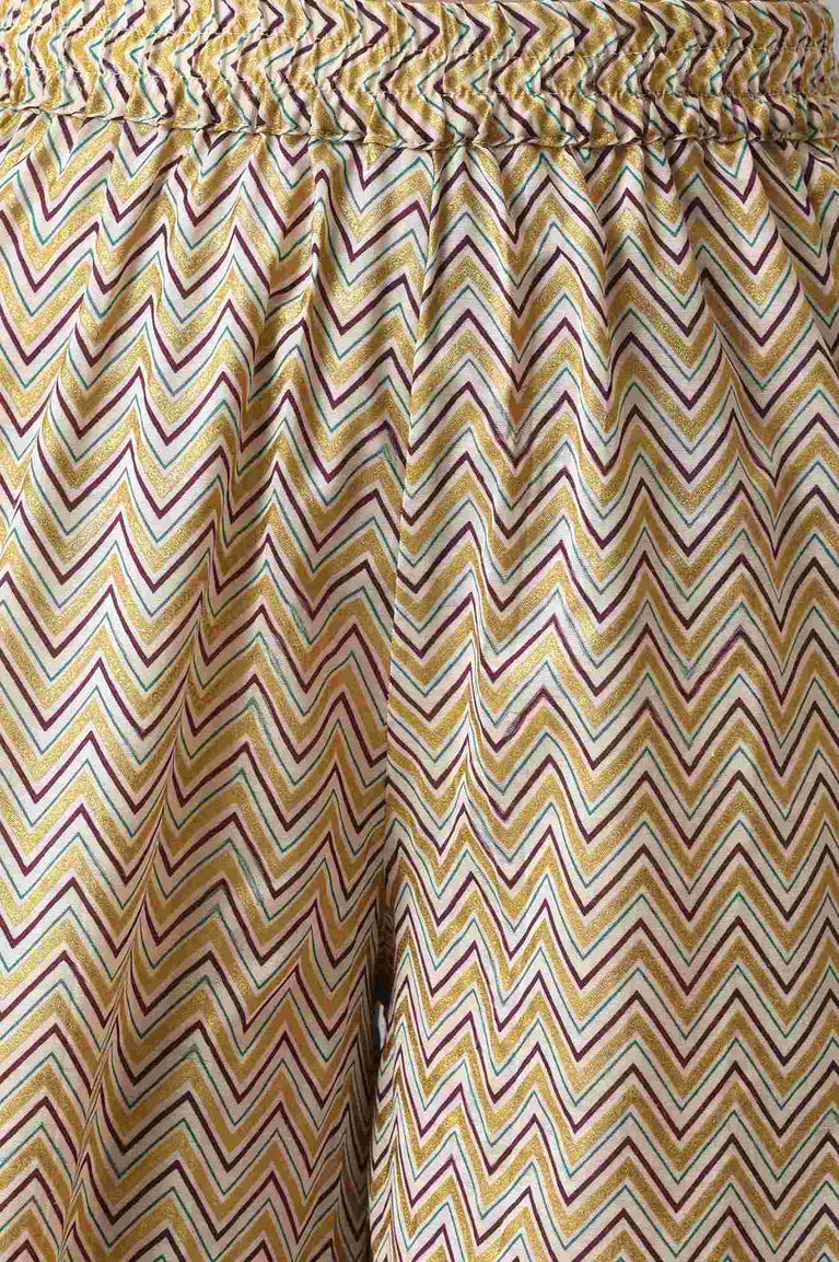 This pair of beige and gold-toned culottes has printed detail, an elasticated black with side zip and button closure.