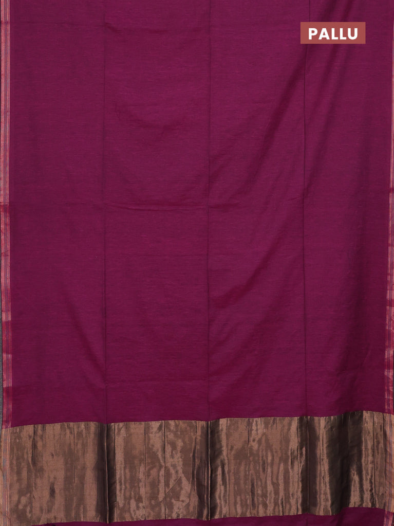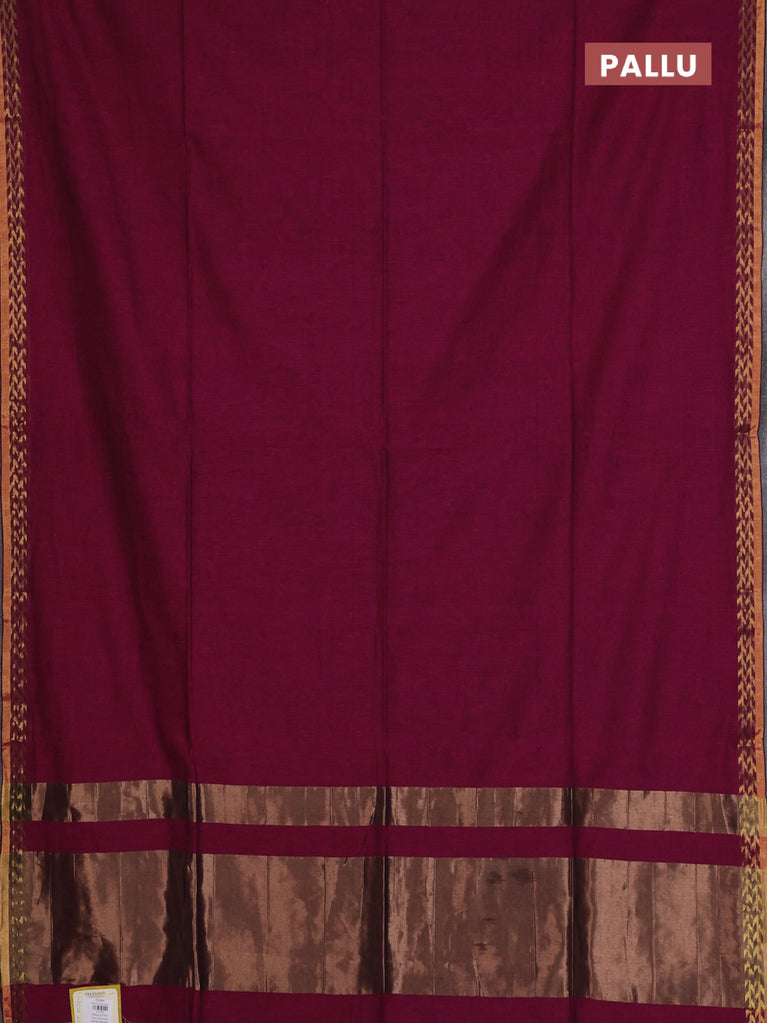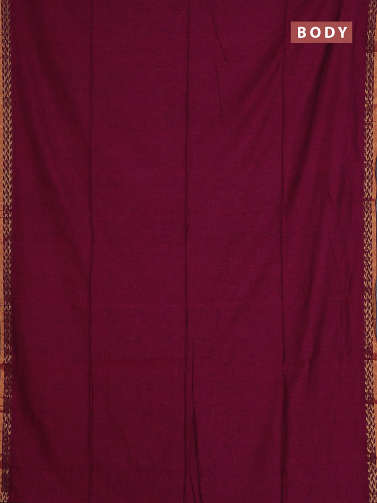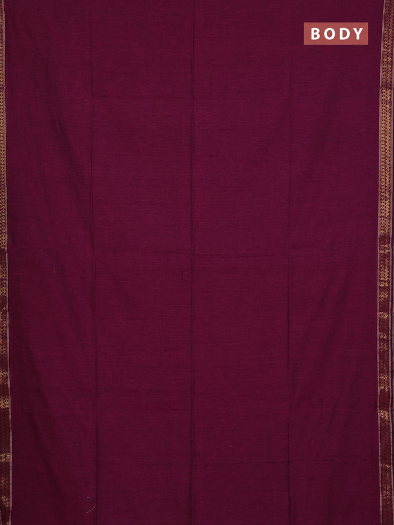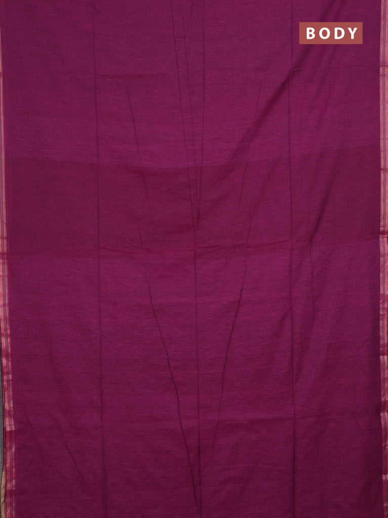 Bengal soft cotton saree dark magenta pink and blue with plain body and zari woven border